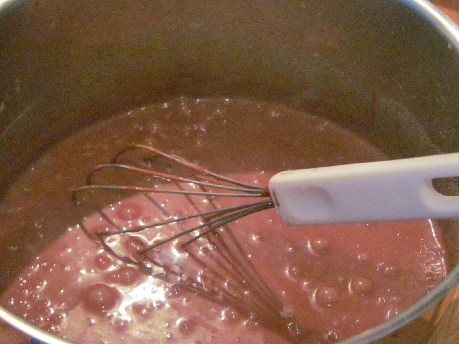 - Добавям към свареното прясно мляко, на изключен котлон, разтворената вече пудингова смес. Бъркам постоянно с тел за разбиване.