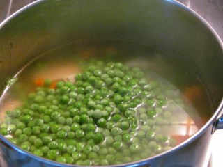 - Малко, преди да са готови морковчетата, или 4 минути преди това – пускам граха при месото и морковите.