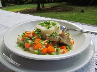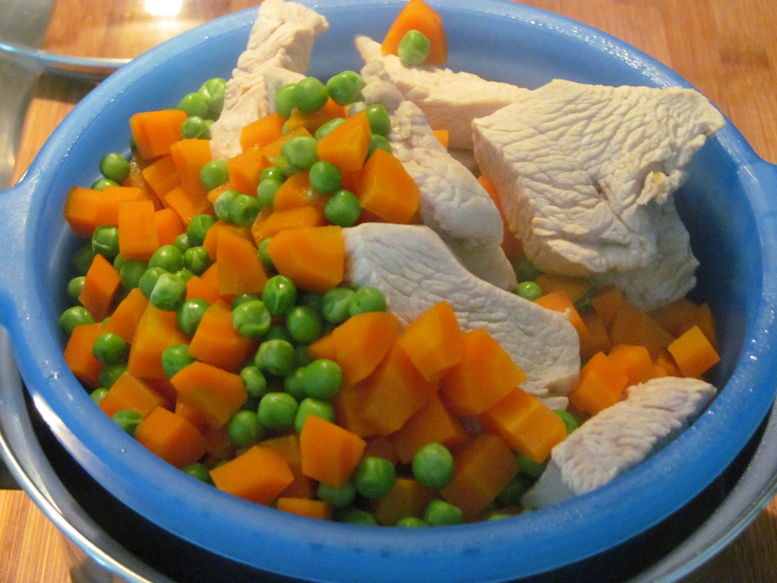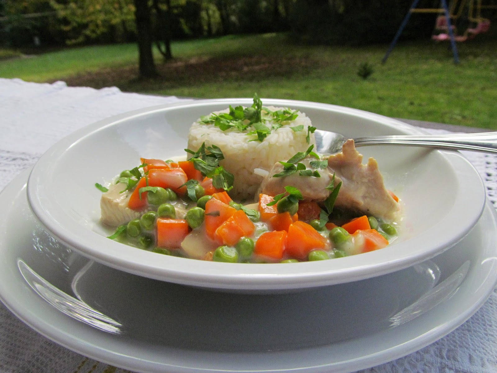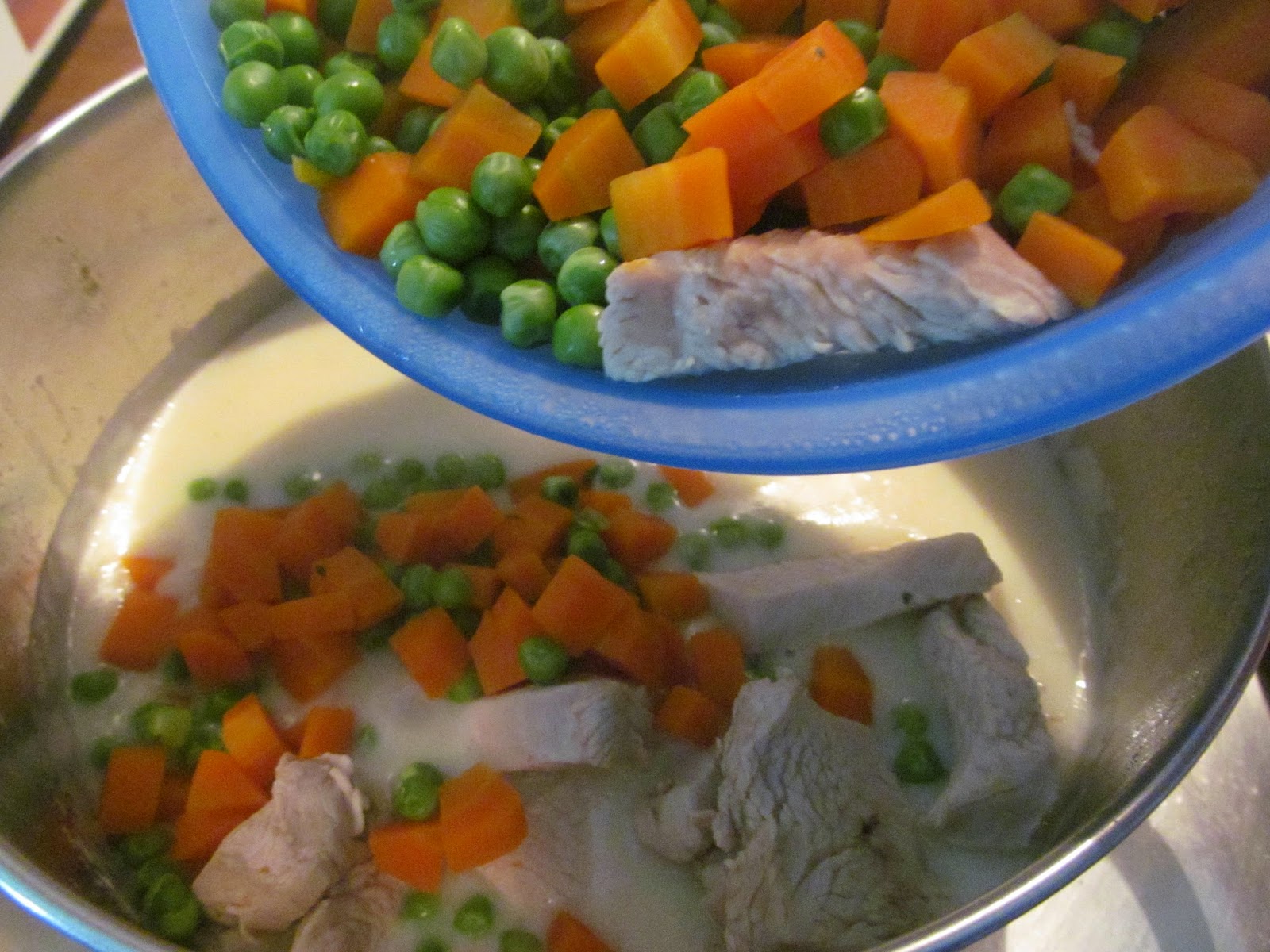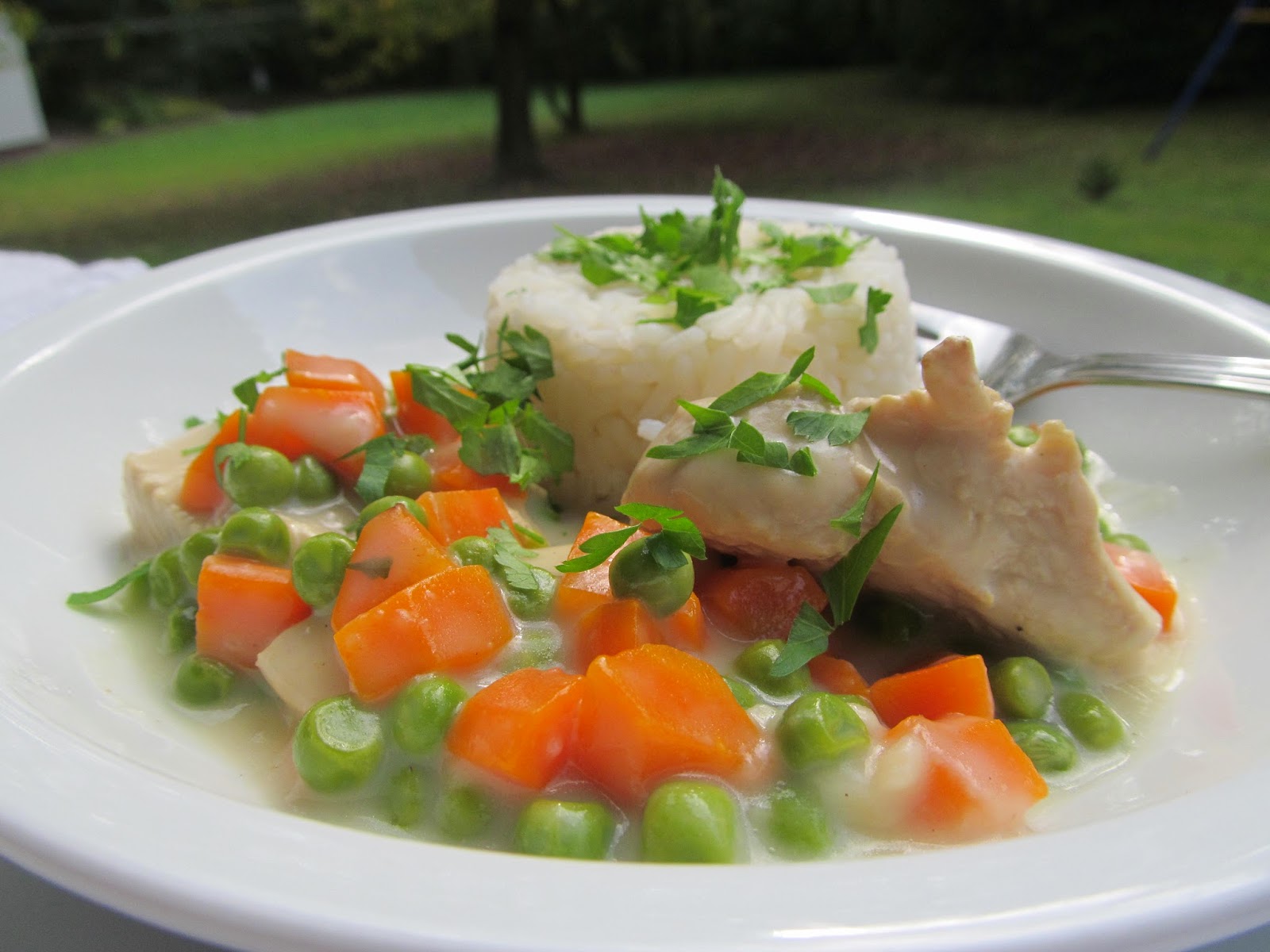 Обожавам тази комбинация – пуешко филе, моркови и грах, бял ориз и разбира се – сос фрикасе!