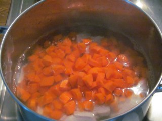 - Измивам, обелвам и нарязвам морковите на малки кубчета.