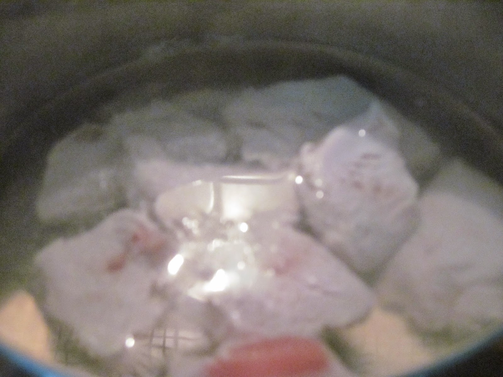 - Пускам пуешките стекчета във бульона и намалявам котлона, колкото бульонът да къкри. Варя месото около 10 минути. На пуешкото месо не му е и нужно повече. То се приготвя много бързо.