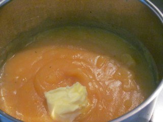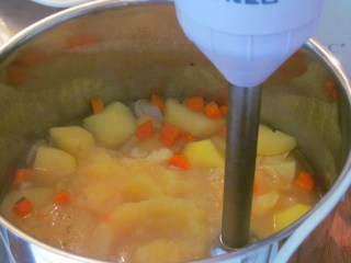 • С помощта на пасатора, пюрирам зеленчуците в тенджерката.