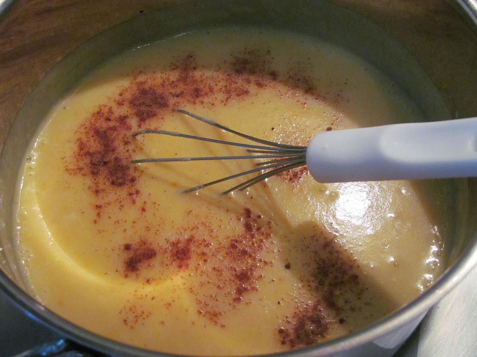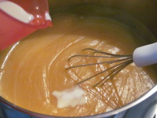 • Добавям на тънка струйка прясното мляко и разбърквам супата с тел за разбиване.