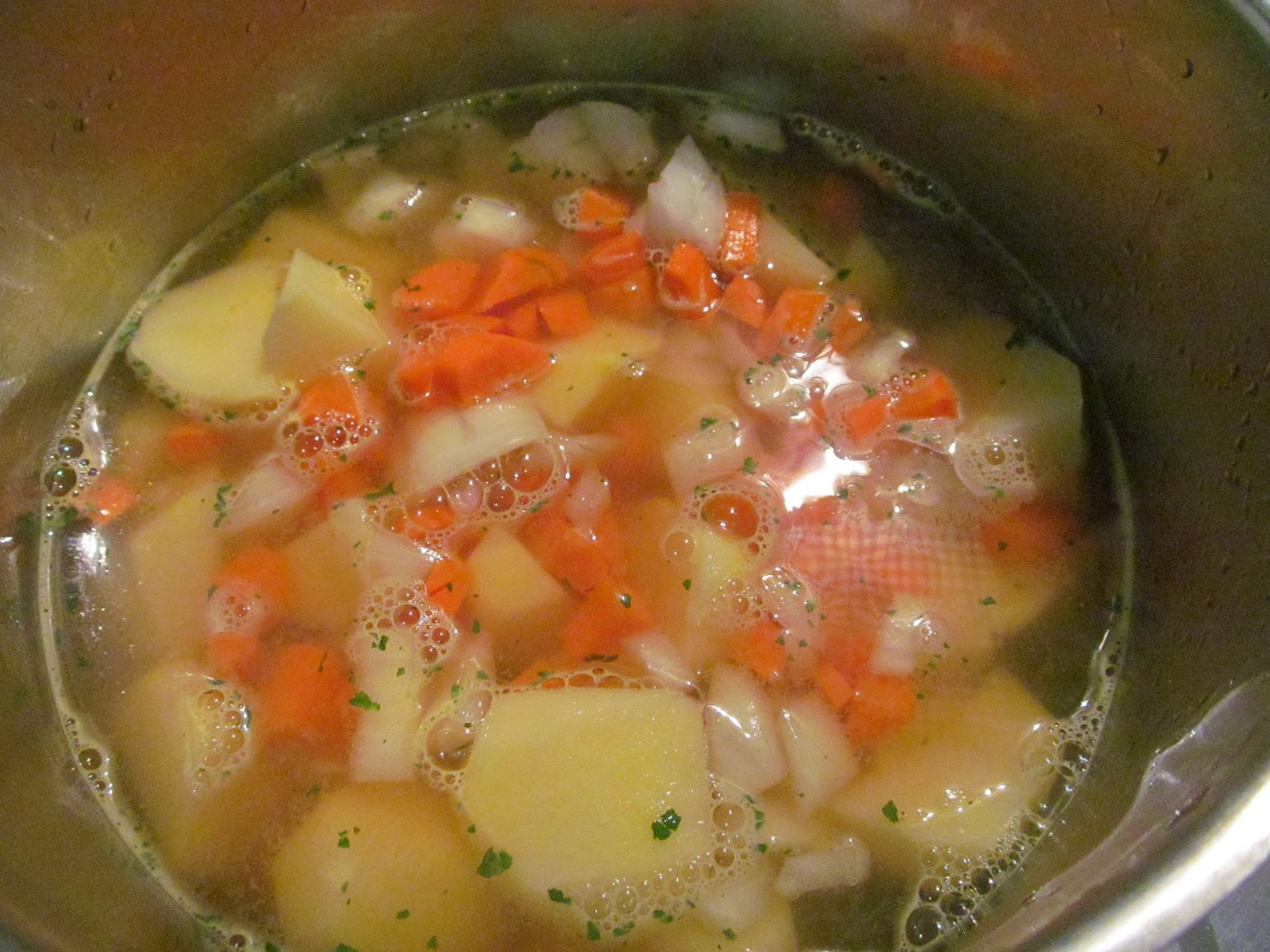И… тъй като  е супичка, реших да не се лишавам от любимите морков и лук в нея. Но, ако не сте почитатели на тези два зеленчука – спокойно не ги добавяте!
