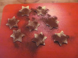 - Поръсвам звездичките с какао и ги оставям на страна.