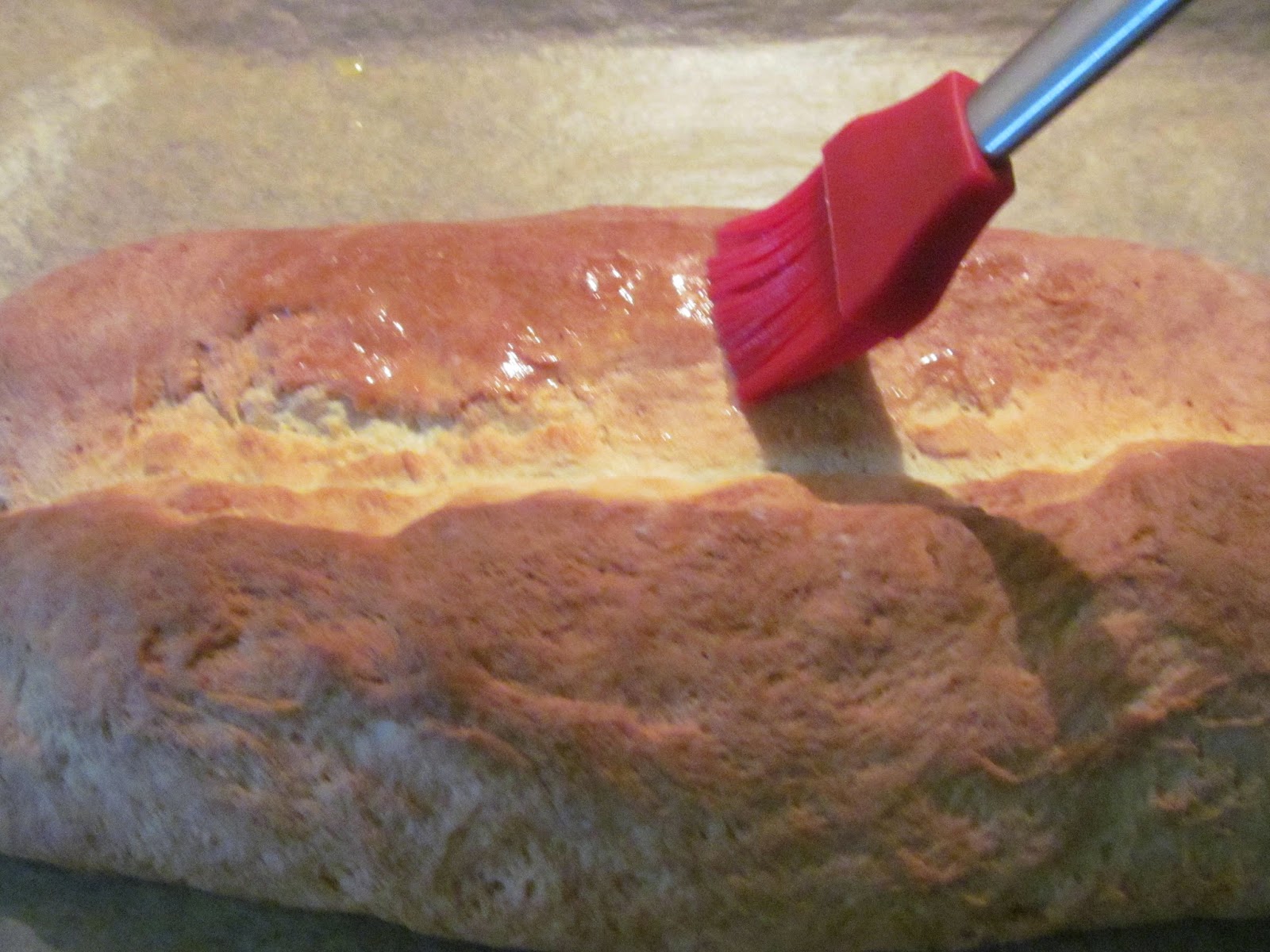 - Току що извадения от фурната горещ щолен, намазвам обилно с масло.