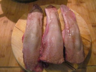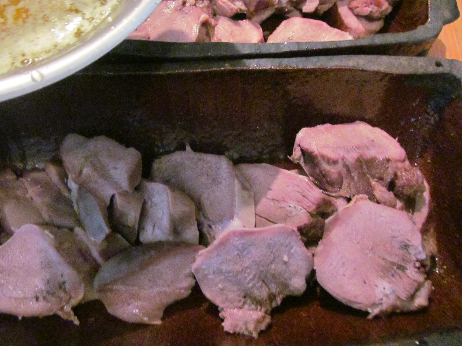 - Когато езикът е сварен, изцеждам от бульона, заливам със студена вода /за по-лесно обелване/ и с помощта на остро ножче – обелвам грапавата кожа на езика.