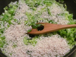 - Добавям ориза и го запържвам само до „стъклен“, или докато оризът получи прозрачен цвят.