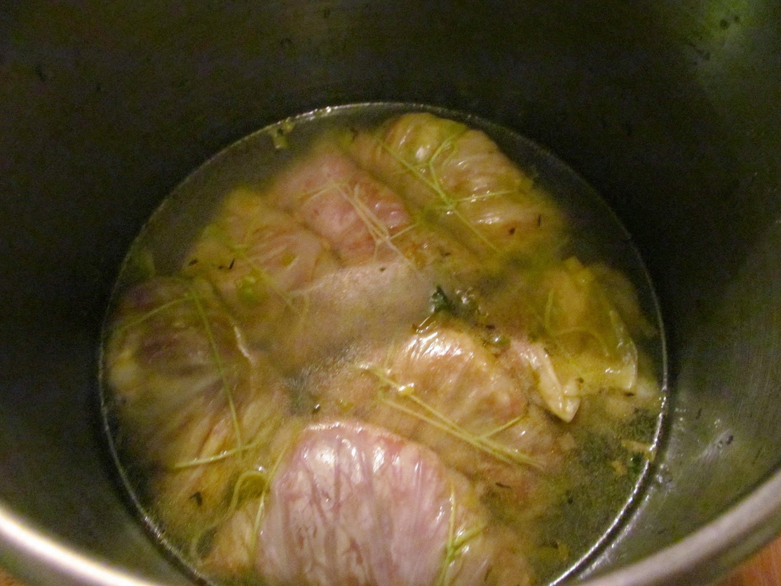 Днешните сарми са приготвени със 7 външни листа от една кисела зелка и мини стекчета от свинско месо.