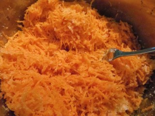 - По време на варене на морковите се отделя вода, която за около 40 минути се изпари и морковите станаха с гъстотата на тесто. От време на време разбърквам, за да не залепнат за дъното на тенджерата.