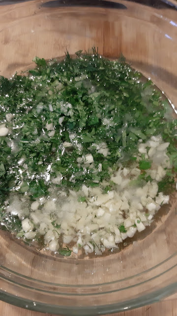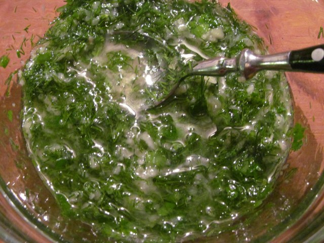 - Зелените подправки нарязвам на ситно, заедно с дръжките.