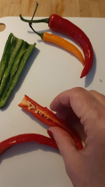 - Тези чушлета не са достатъчно люти и поради тази причина ги смесвам с много люти, които почиствам от семето и бялата ципа.
