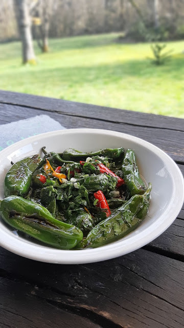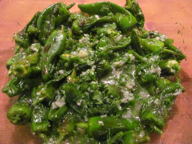 Тези чушки ме връщат във времето, когато живеехме във Волуяк и ги пробвах за първи път, преди 25 години, при майката на Галя – леля Дора! Леля Дора е всъщност жената, която ми каза да не пестя копъра и магданоза при направата им, защото добре подправения дресинг на чушките е всъщност най-вкусното нещо.