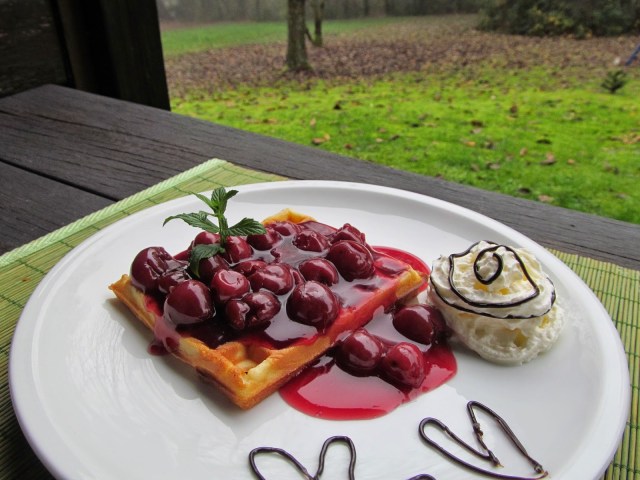ГОФРЕТИ ИЛИ БЕЛГИЙСКИ ВАФЛИ С ГОРЕЩ ЧЕРЕШОВ СОС