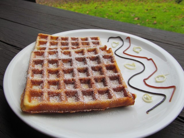Ако някои от гостите Ви не желаят от горещия черешов сос, можете да поднесете вафлите само поръсени с пудра захар или пък поляти с течен шоколад.