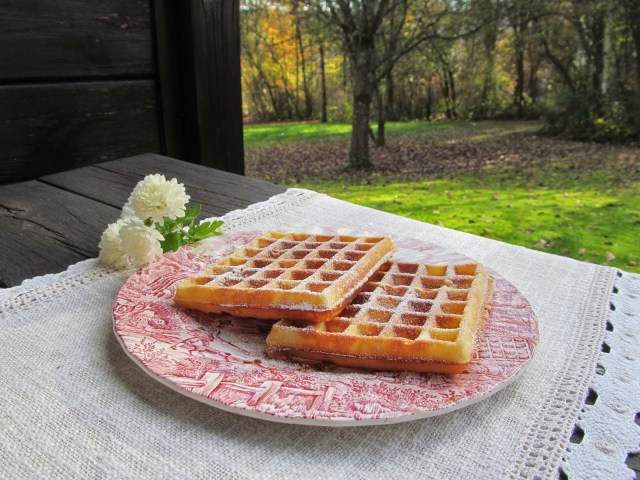 Брюкселски вафли, гофрети или просто Waffeln. Отново различни наименования на едно и също сладко изкушение. Познати са на всички нас! Но…тук в Германия е нещо естествено във всяка къща да има уред за направата им. Естествено е и да се поднасят като допълнение към супата, което пък не е естествено за нас – българите. Ние сме свикнали да си ги похапваме като сладкиш, заедно с кафето. Аз също много ги обичам!  Благодарение на запитвания от читатели на Ухае на…, похапнахме и ние от тези вкусни,  домашно приготвени вафлички, поляти с горещ черешов сос!