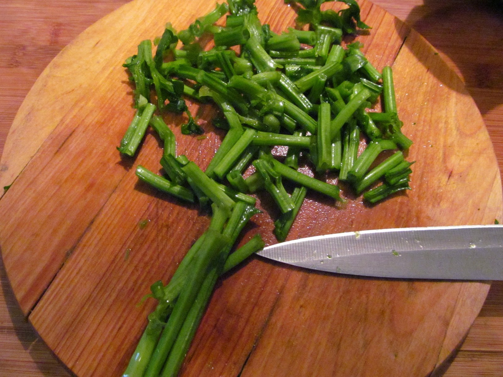 - Нарязвам стеблата и коренчетата на парченца с размер около 2 см.
