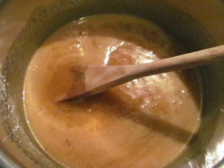 - В подходящ тефлонов тиган разтопявам захарта до златист карамел. Нужно е от време на време допълнително да връщам тигана на котлона, защото каремалът много бързо се втвърдява.