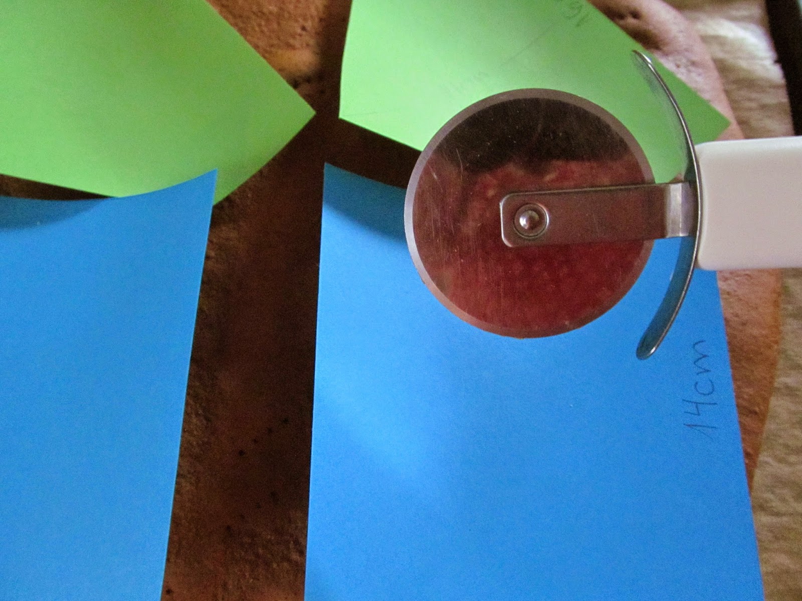 - За изрязване на шаблоните използвам резец за пица. Така изрязването става бързо и лесно. Подреждам винаги най-напред, най-големите шаблони, за да съм сигурна, че двете кори ще са ми достатъчни.