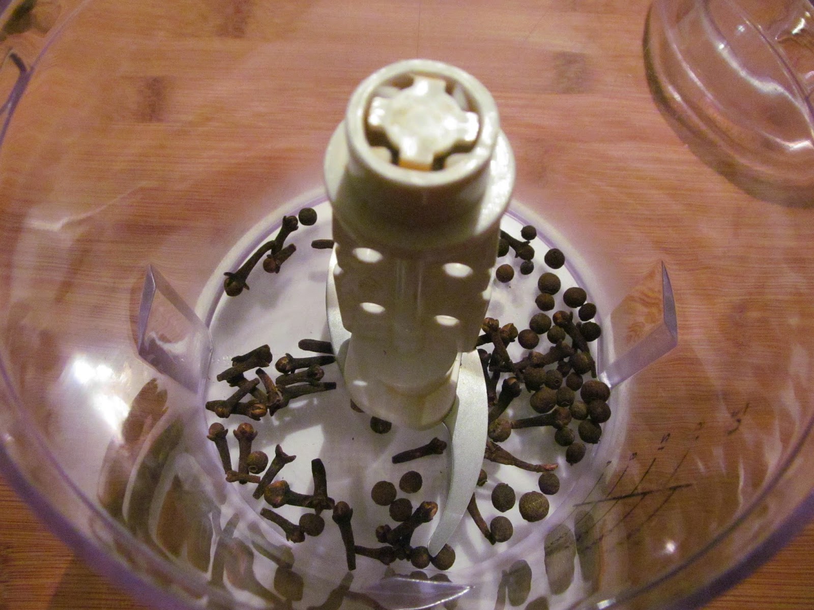 - Подправките, които се нуждаеха от смилане, смлях в блендера и тъй като това не може да стане на 100%, пресях през цедка, така че да получа прах от карамфил и бахар. Количеството, което сложих в блендера, бяха 25 карамфилчета и 25 зърна бахар. Пресятото количество от тези две подправки беше достатъчно.