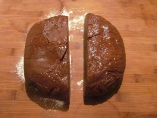 - Разделям тестото на две равни части.