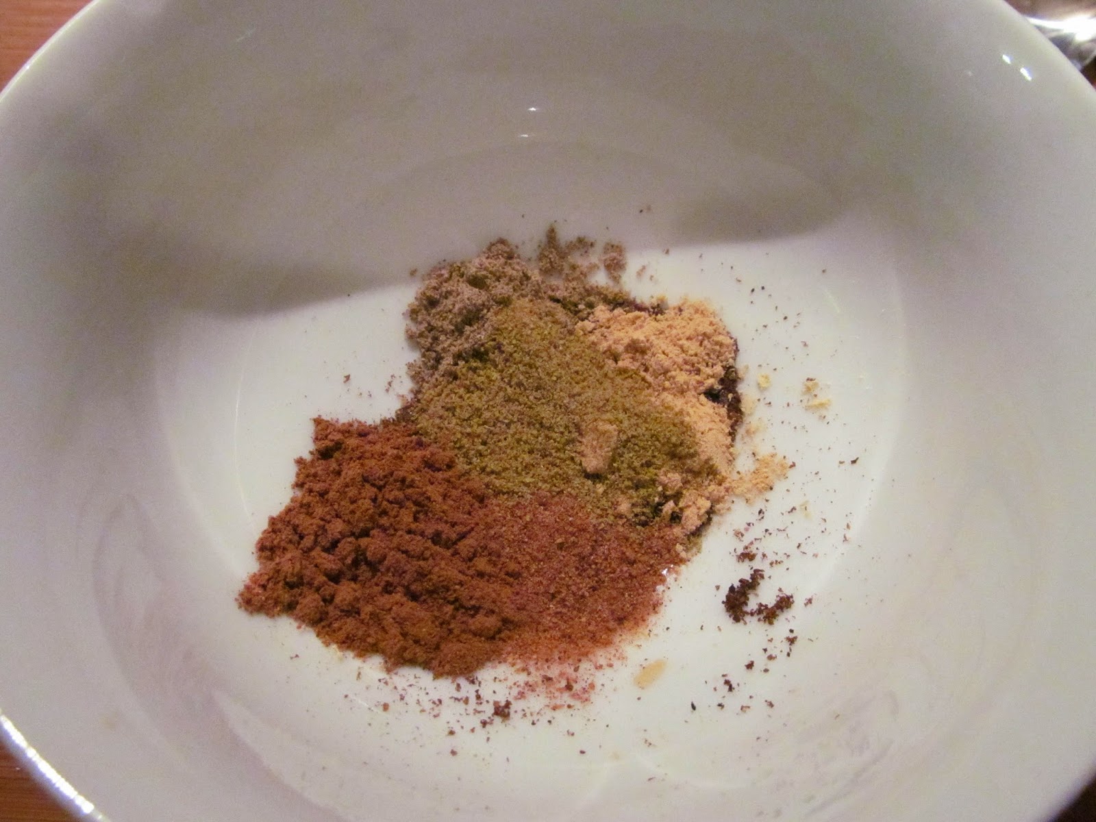 Аз не разполагах със смления вариант на всички подправки и тъй като нямам специална мелничка за подправки, използвах блендера.