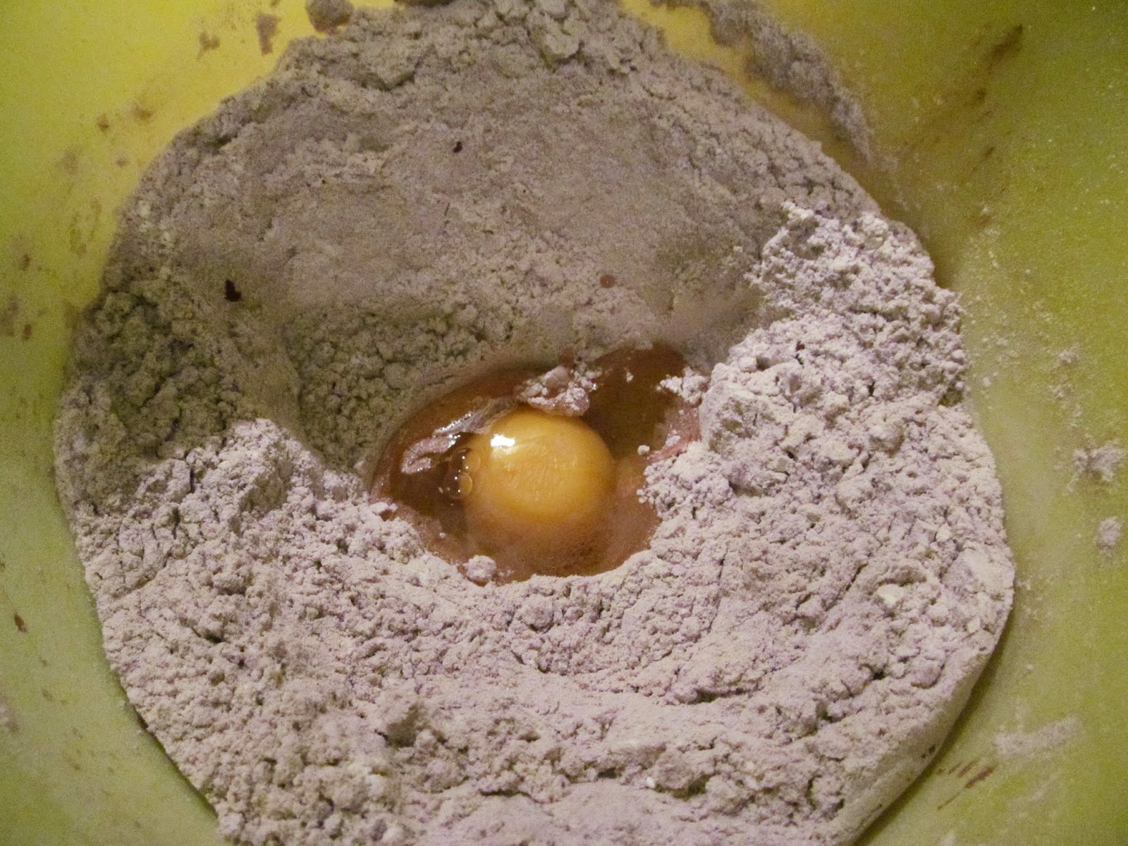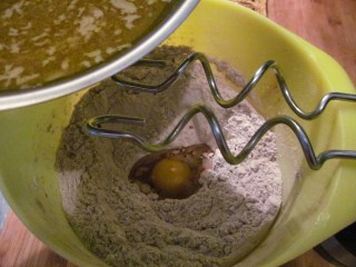 - Чуквам яйцето в брашнената смес.