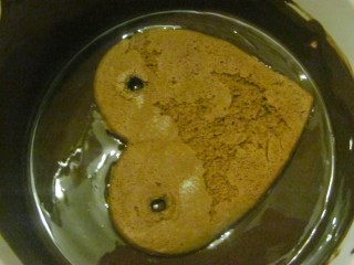 - А пък, за да не ми изстива течния шоколад, държа купата във водната баня, докато свърши цялото количество сърчица, предвидени да са кафяви.