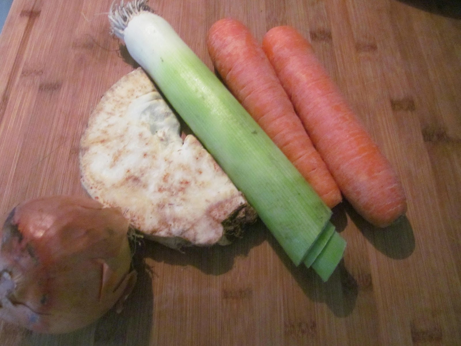 - Всички зеленчуци се почистват, обелват и измиват. Ако ще се използва бульонът за основа на супи и ястия /ако ще се замразява/, зеленчуците се добавят цели. Тъй като ние го хапваме като супа, нарязах зеленчуците на дребни кубчета.