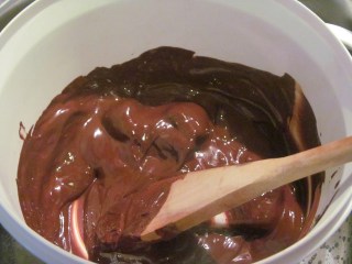 - На другия ден разтопявам шоколада на водна баня. Внимавайте да не попадне вода при шоколада, както и да не завира водата.