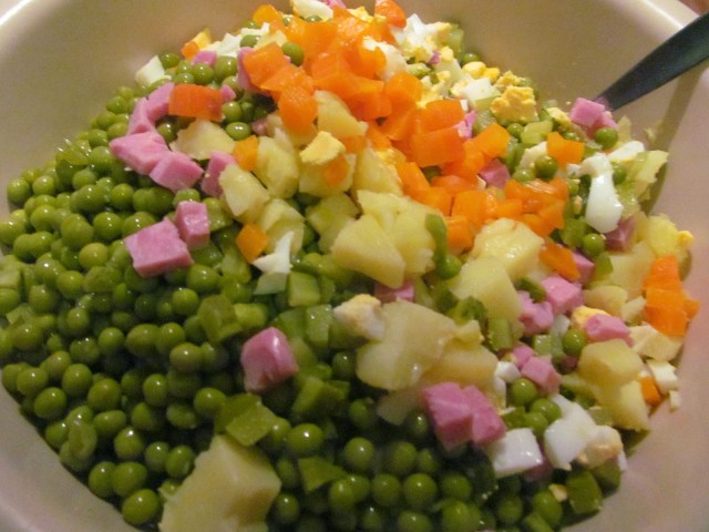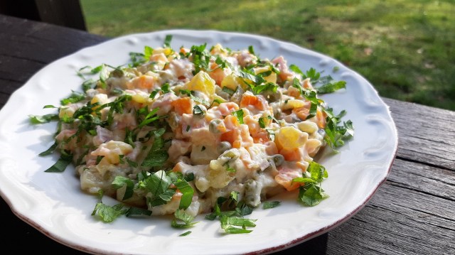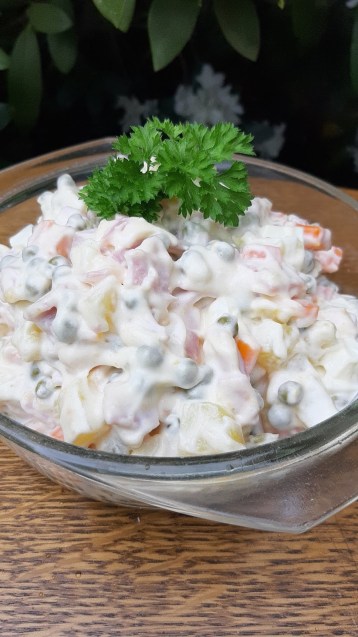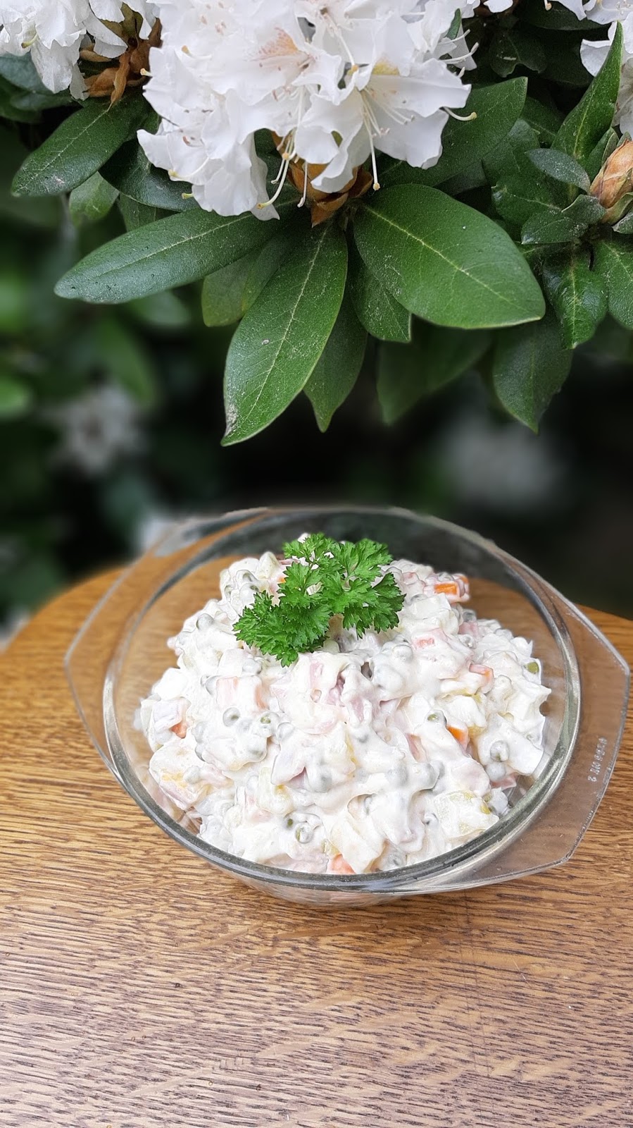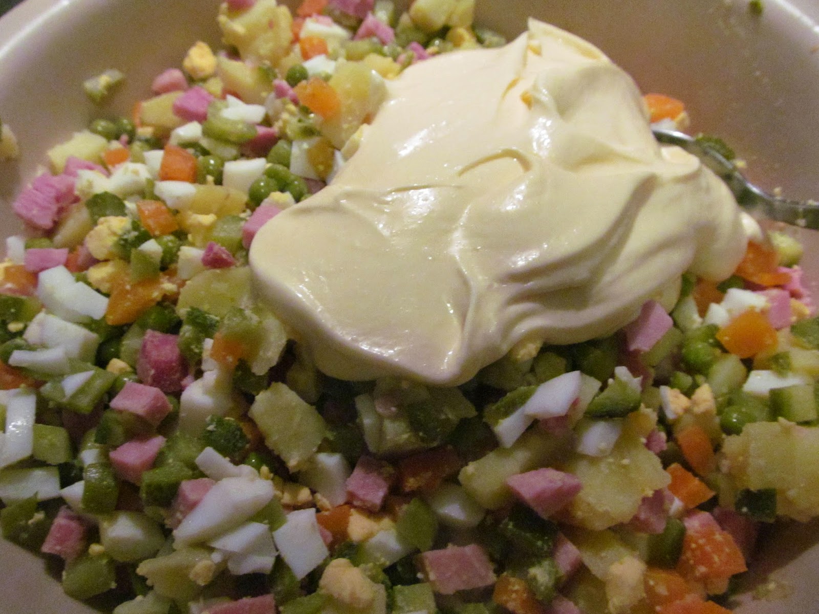 Аз продължавам да Ви запознавам с рецепти от моя социалистически период, които много ми се иска да се съхранят и запазят в истинския им и оригинален вид. Пък и след тортата Гараш, от която останаха жълтъците направих майонеза, която води неизбежно до Руската салата.