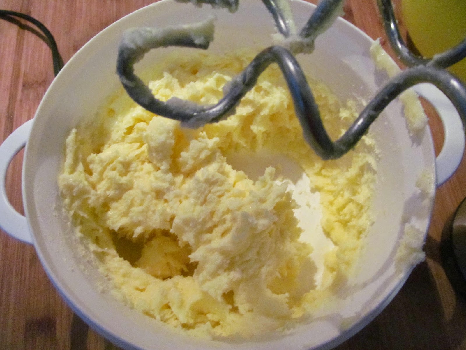 • Разбивам омекналото масло с 220 гр. от захарта, докато се получи пухкав крем. Започвам винаги с накрайниците на миксера за тесто, а после преминавам към накрайниците за разбиване на кремове.