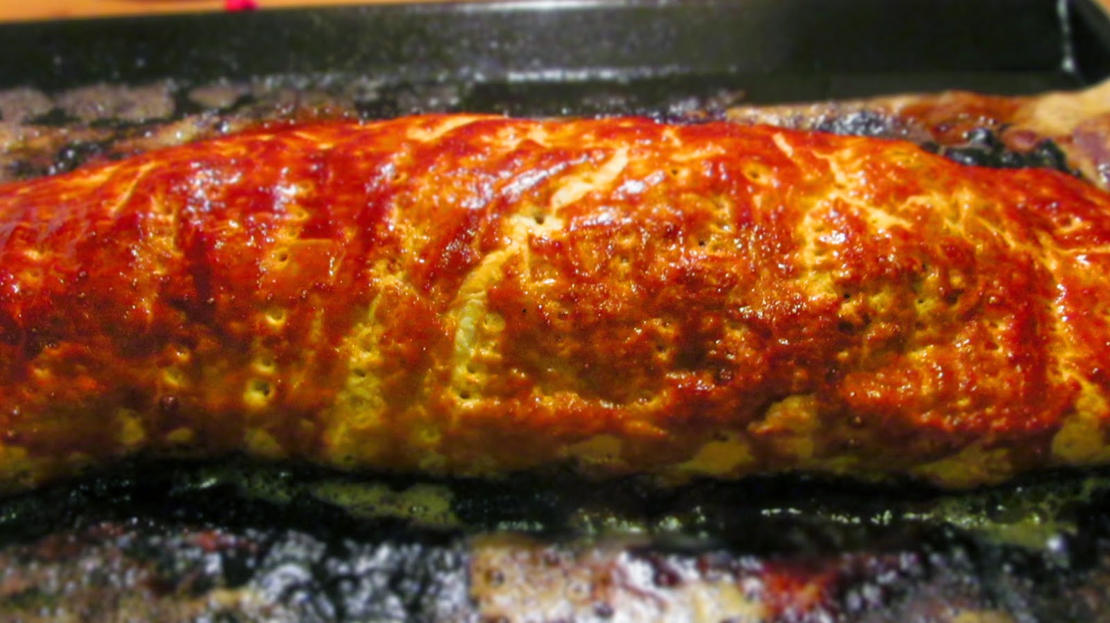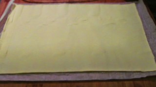 - Разпределям месната смес върху тестото, като си оставям около 2 см. от всички краища свободни от плънка.