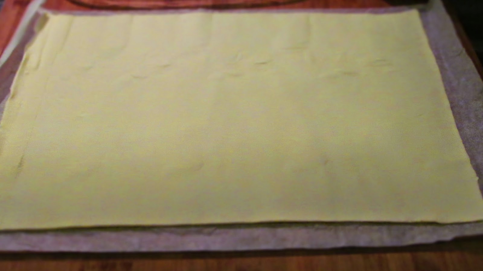 - С помощта на хартията за печене, завивам на руло и пристискам краищата да залепнат, а ръбчето се старая да остане от долната страна – към тавата.