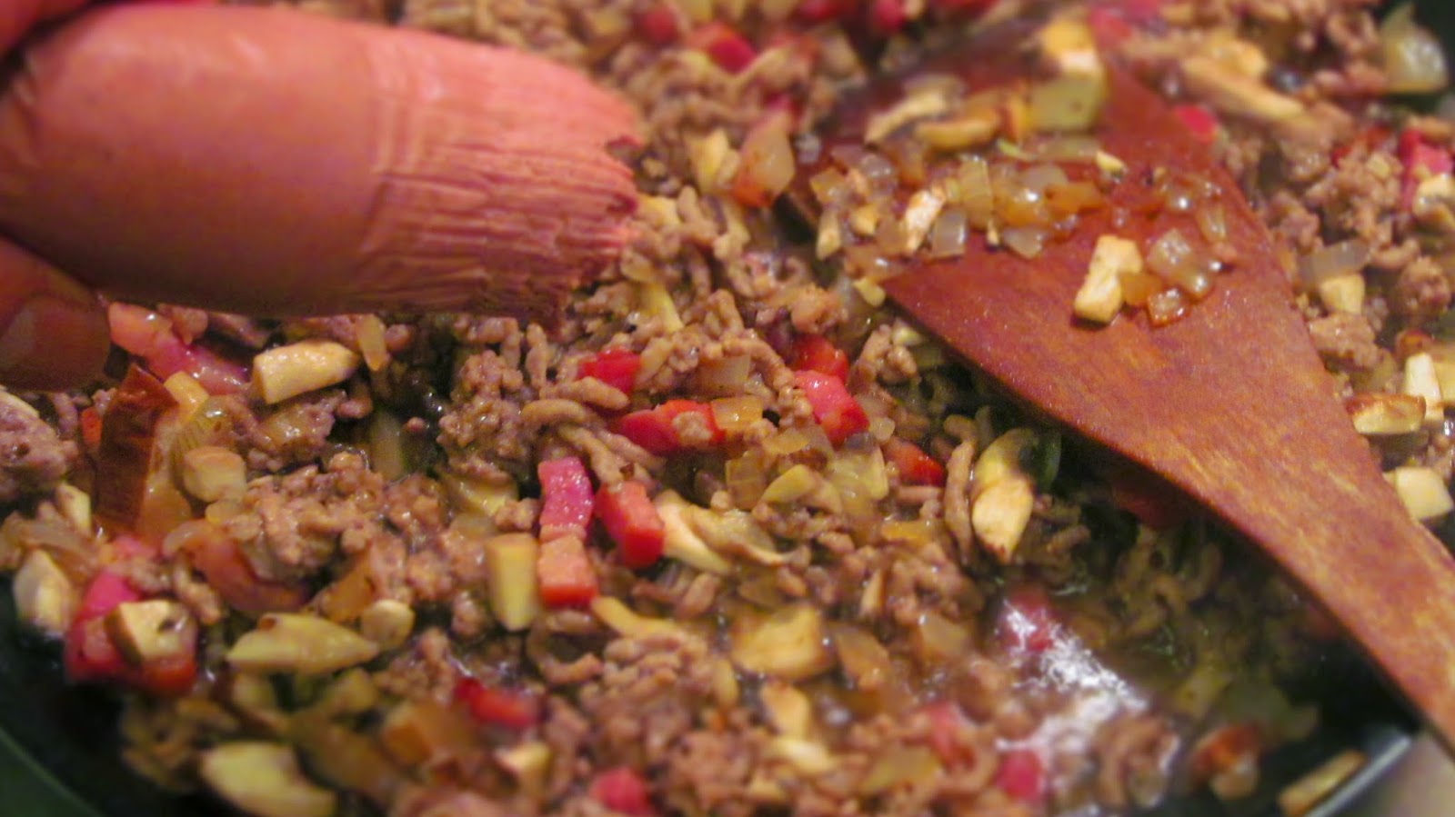 - Добавям каймата и я изпържвам само докато се отдели и стане на малки парченца.
