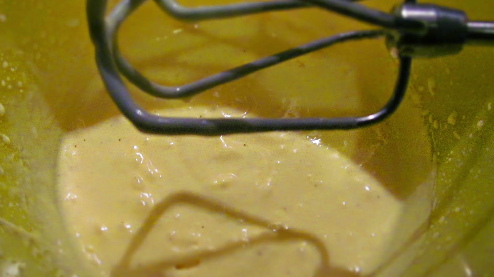 - Разбърквам всичко за около 4 минути с миксера /накрайници за разбиване/.
