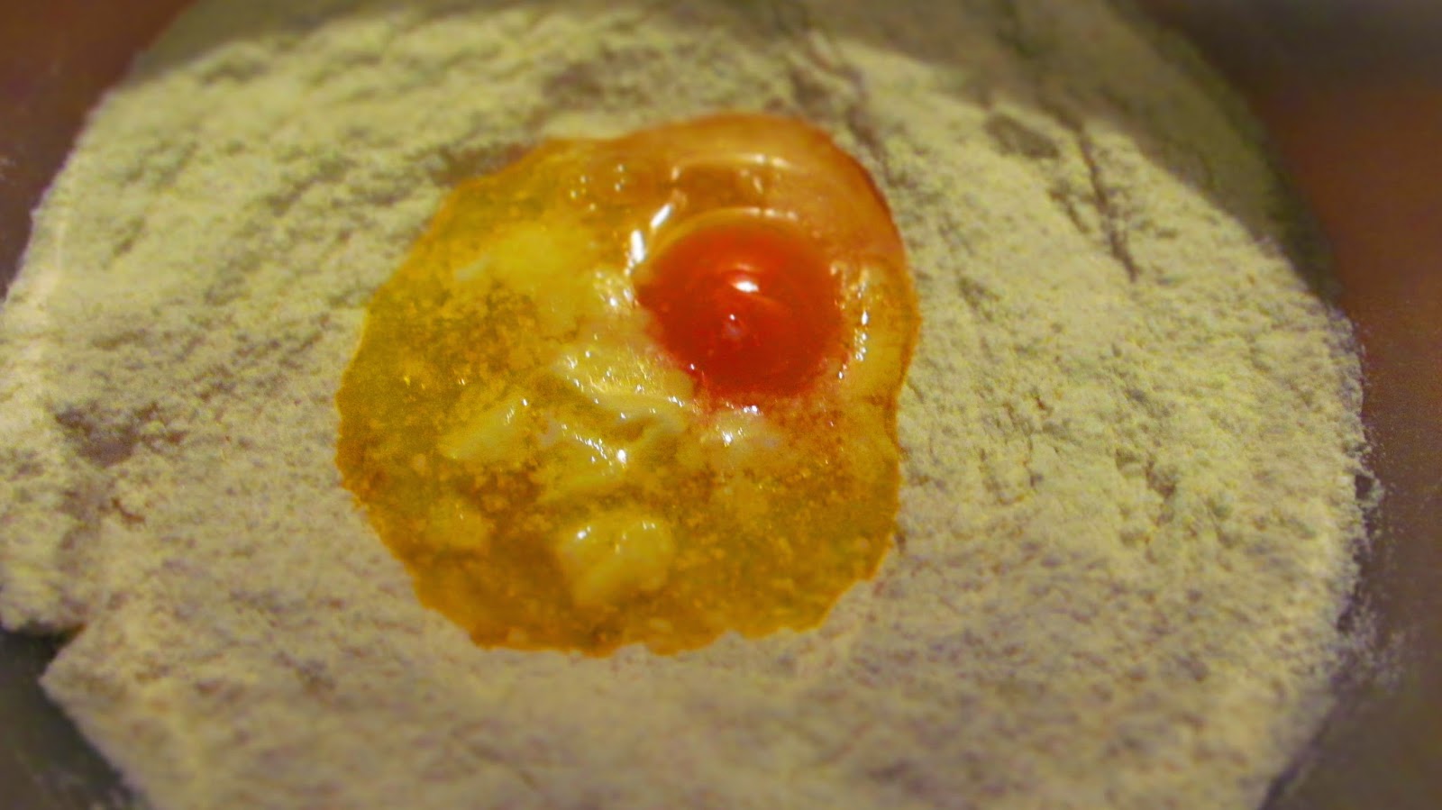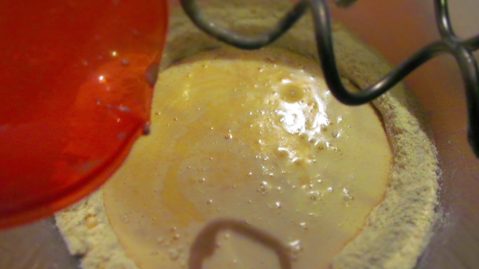 - В кладенчето чуквам яйцето и добавям 25 гр. меко масло.