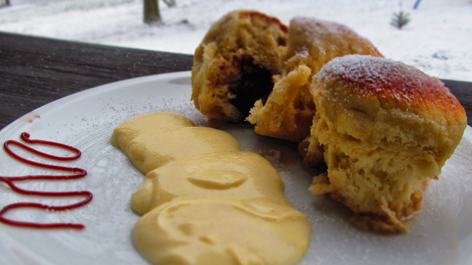 Всяка национална кухня си има своите специфични вкусове и често използвани продукти. И друг път съм писала, че немската кухня е много различна от нашата, но немските сладкиши опитани един път, остават завинаги любими. Така е и с тези бухти. Бухтите, с които аз съм израстнала, приготвени от моята майка, имат съвсем различен вкус и вид. Но тези – немски пълнени бухти са един сладкиш, който задължително трябва да опитате! Пухкави, сочни, ненатрапчиво сладки, пълнени с мус от сини сливи и сервирани със охладен ванилов сос.
