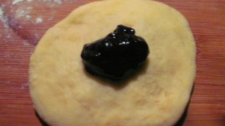 - В средата на всяка кора слагам 1 ч. л. мус от сини сливи.