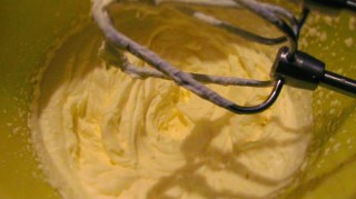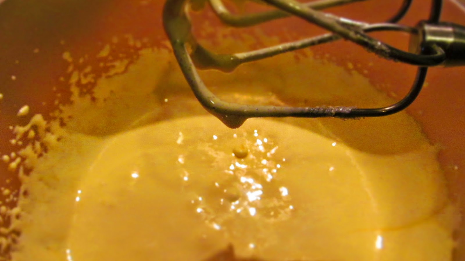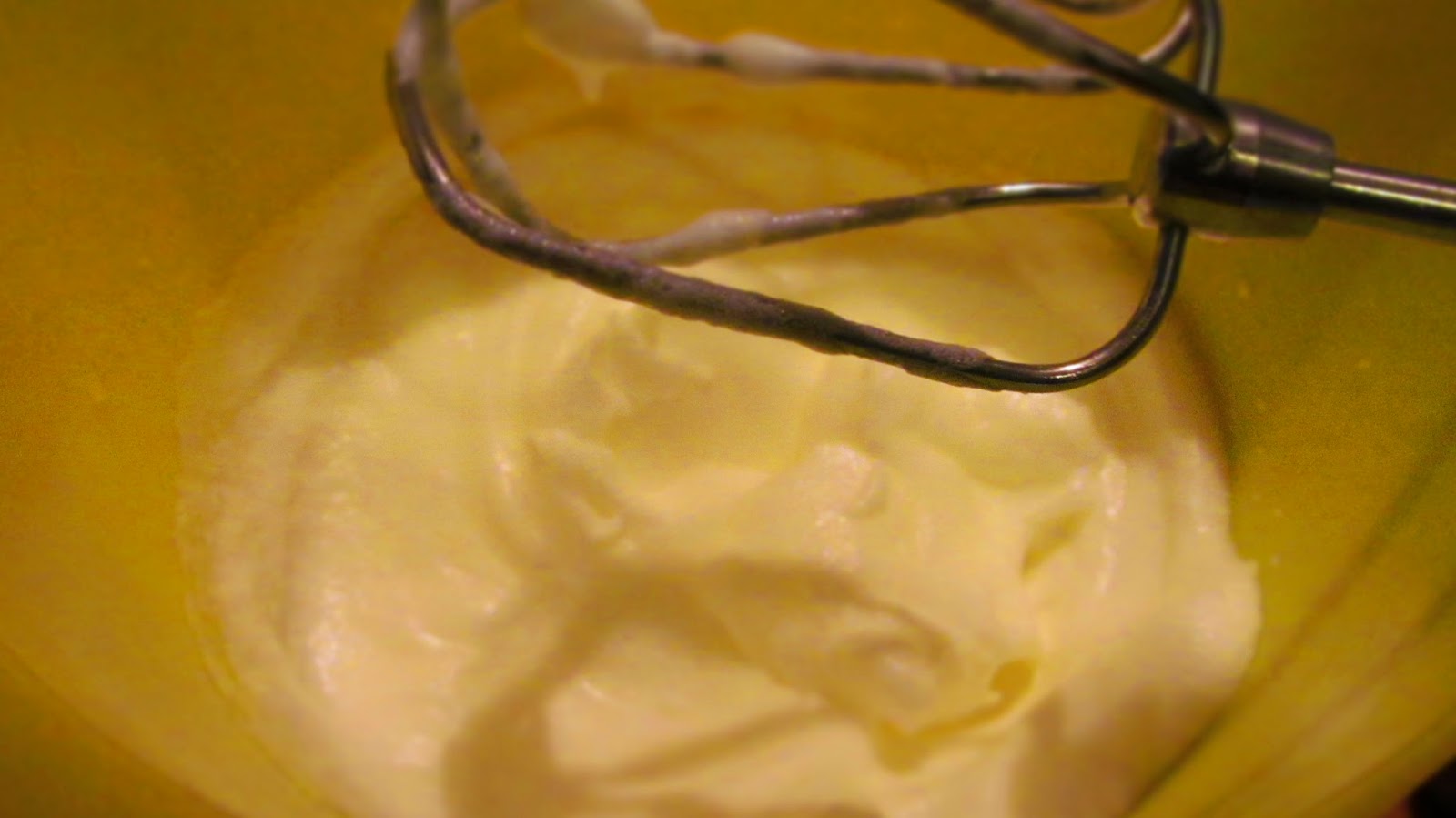 - Разбиването продължава докато жълтъците почти побелеят и се получи пухкав крем.