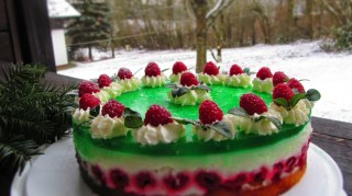 С растението Лазаркиня /за превод на Waldmeister, използвах Уикипедия/ се запознах, когато дойдох да живея в Германия. От него тук се приготвят много алкохолни и безалкохолни напитки, приготвят се сладкиши и се използва и като подправка. Бях много запленена от ярко-зеления цвят на тази торта и затова избрах нея за днешния ден.