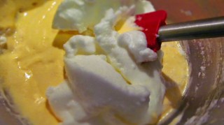 - Добавям белтъците към яйчената смес и вече не използвам миксер, а разбърквам съвсем бавно и внимателно, за да не спадне обема на белтъците и тестото за блата да остане пухкаво.