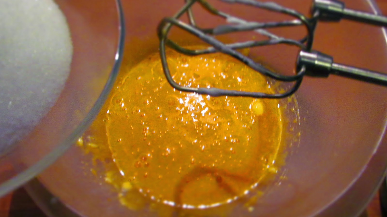 - В купата със жълтъците добавям захарта и разбивам минимум 5 минути.