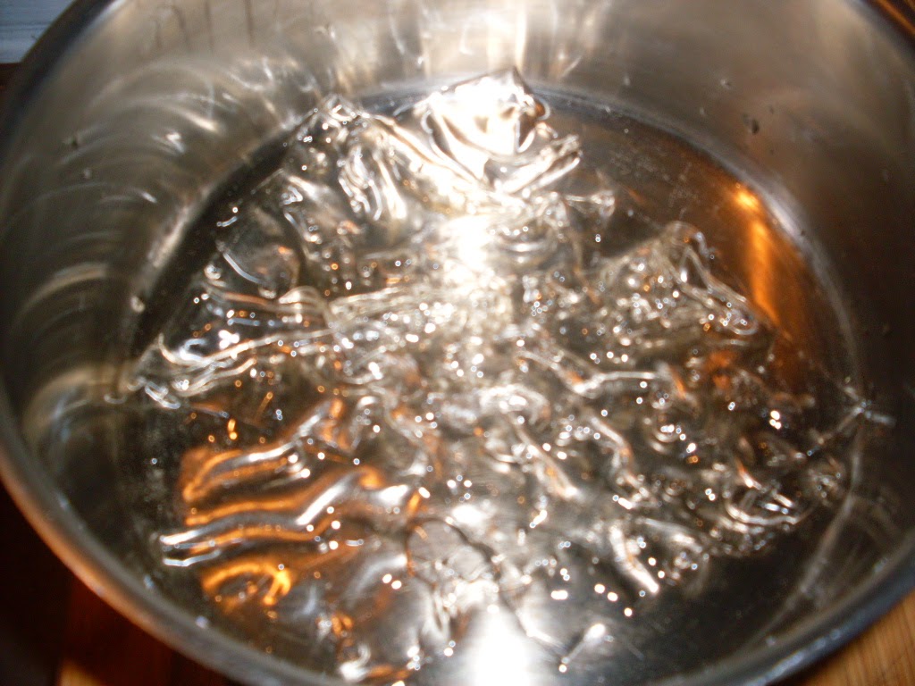 - Сварявам гъст сироп от 1 ч. ч. захар и 1/2 ч. ч. вода.