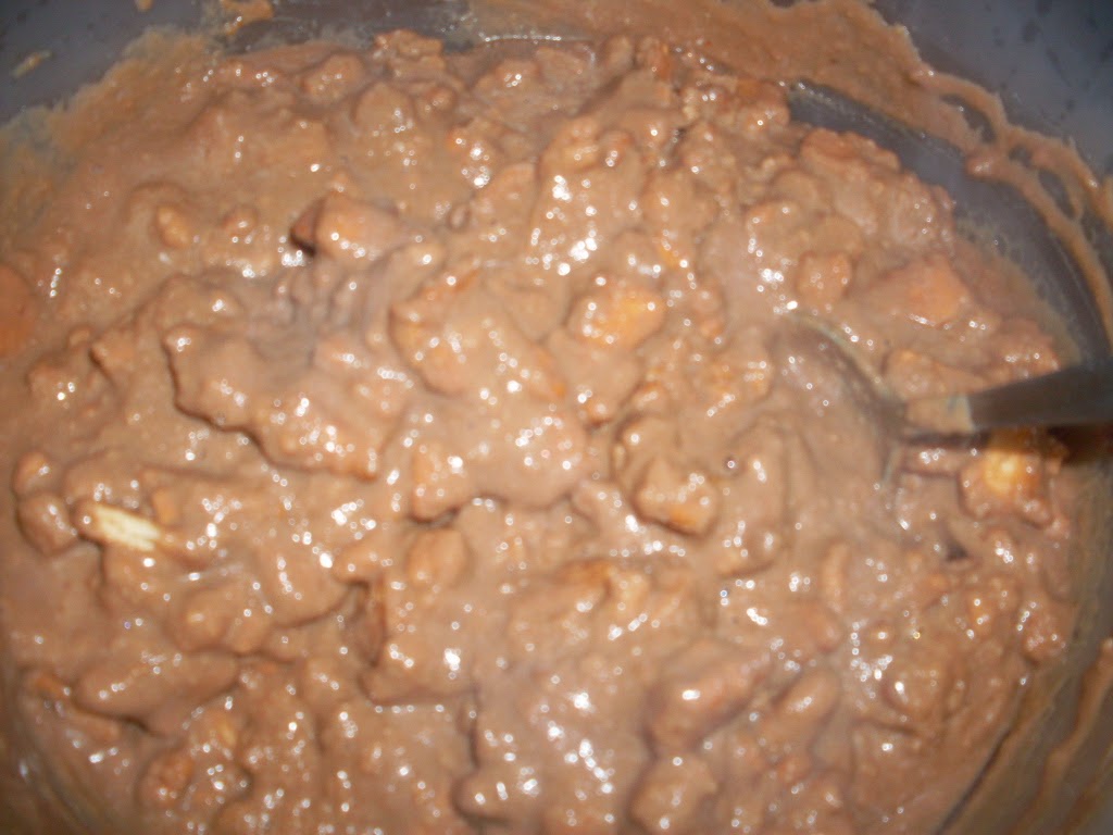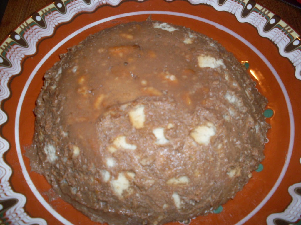 - Изсипвам сместта в купа с обло дъно, изплакната предварително със студена вода, за да може после по-лесно да се обърне тортата в чинията.