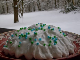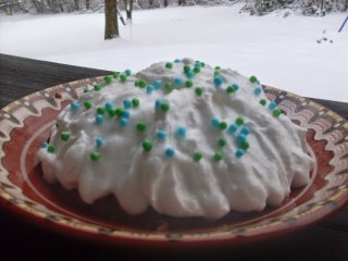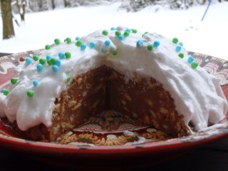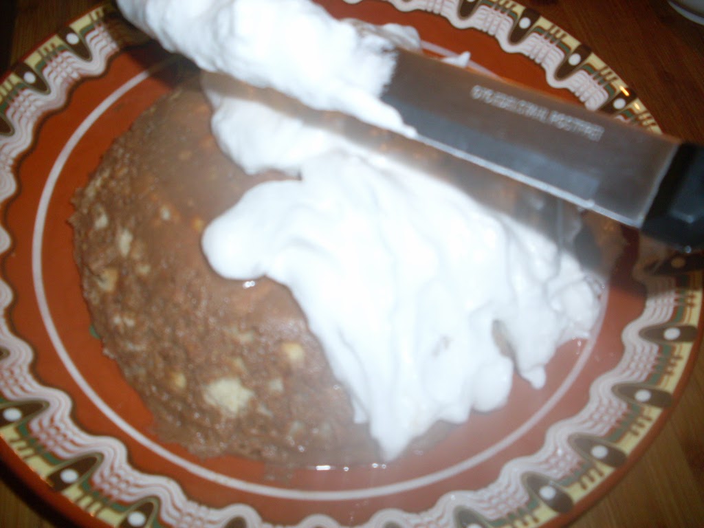 - С помощта на нож нахвърлях изстиналия белтъчен крем, без да го заглаждам.