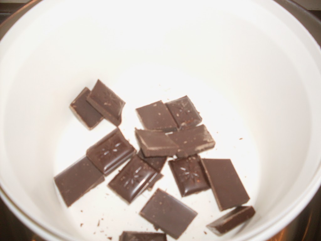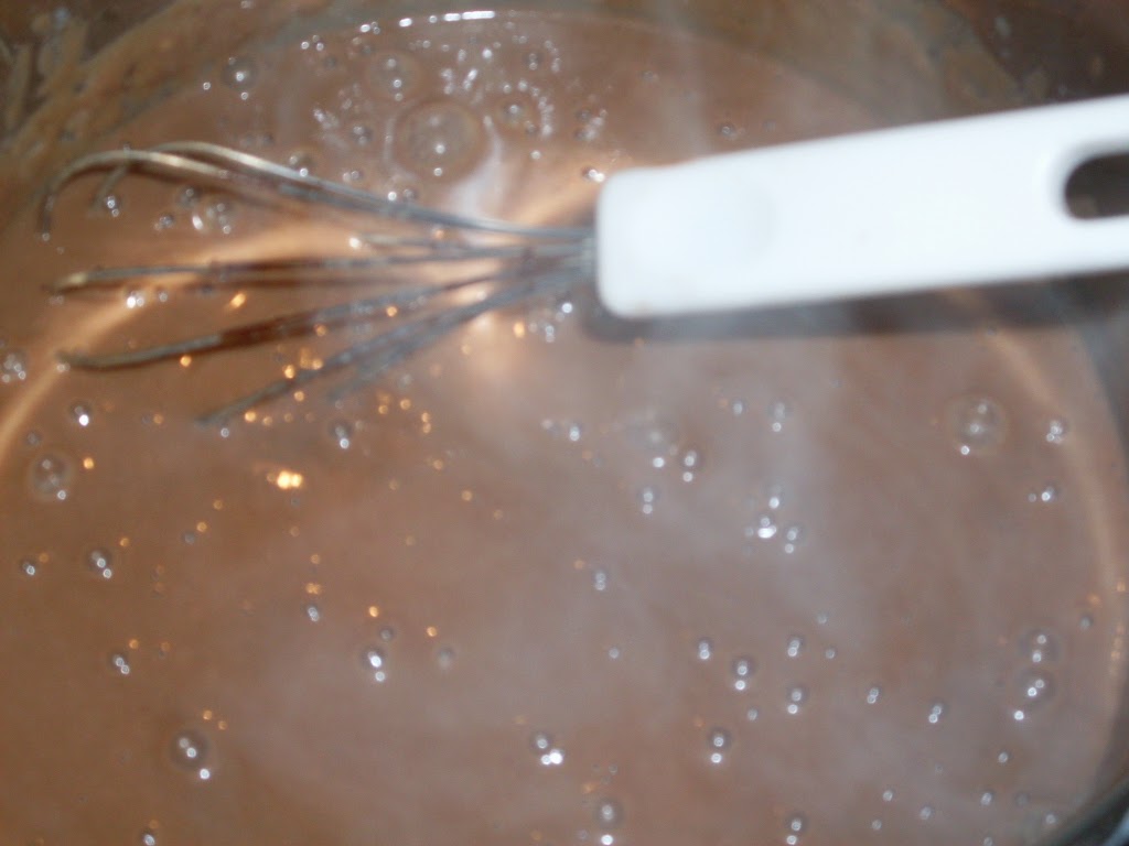 - Към горещия крем, добавям разтопения шоколад, ванилията и набъбналия желатин като продължавам да разбивам до получаването на гладък крем.