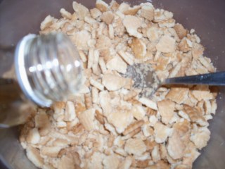 - Натрошавам бисквитите в купа и ги напръсквам с рома.