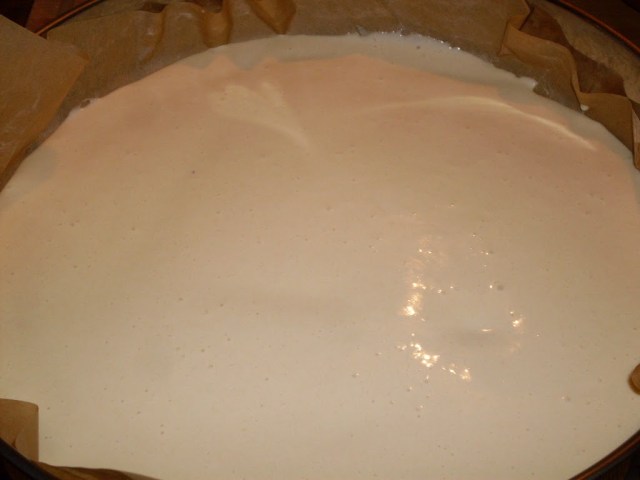 - Постилам тавата с хартия за печене /нашите баби нямаха такава и намазваха тавата само с мазнина/, изсипвам първата купичка и последователно опичам на 180 градуса, за около 30 минути 4 блата – 2 жълти и 2 кафяви.