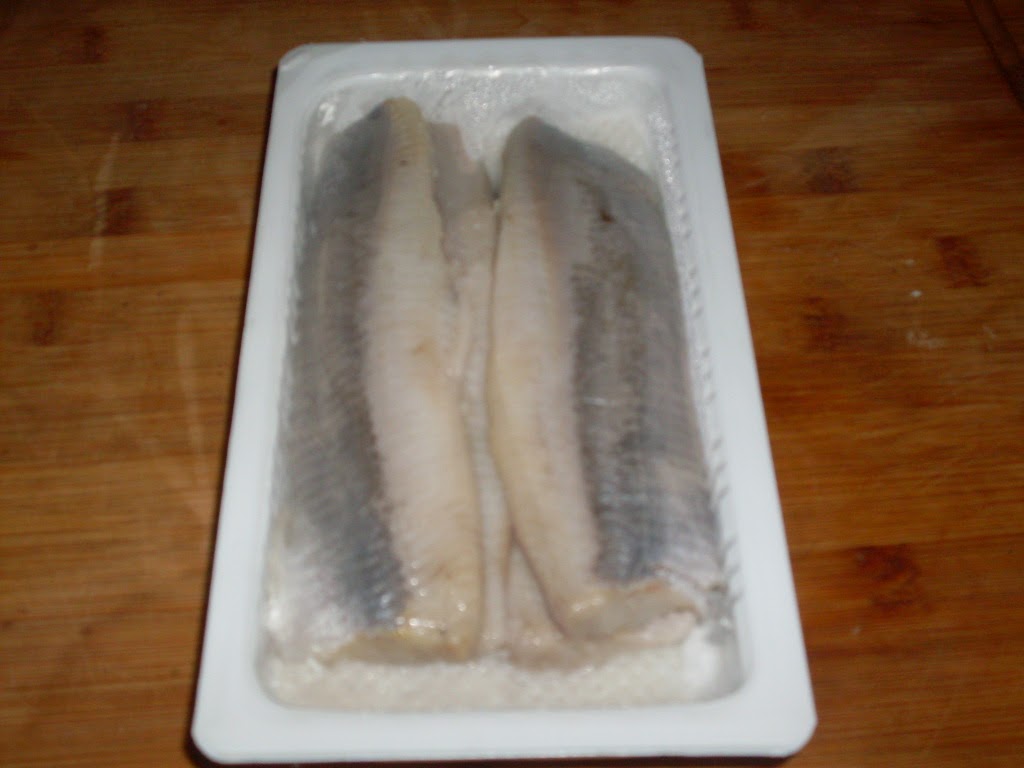 - Изваждам херингата от оригиналната опаковка и подреждам в дълбока купа.
